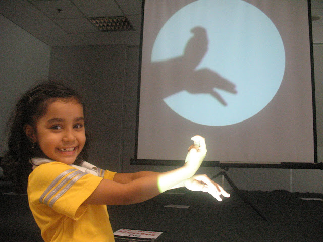 Dengan menggunakan cahaya lampu senter, buatlah bayangan-bayangan yang bisa memancing imajinasi anak. Seperti, cobalah membuat burung terbang, membuat bentuk-bentuk binatang, atau membuat bentuk-bentuk benda yang mungkin bisa dikenali oleh anak. Tidak hanya membuat banyangan menggunakan tangan, bunda juga bisa mencoba teknik wayang dengan kertas.